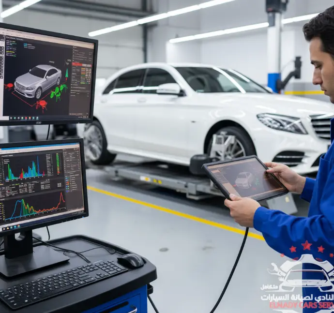 بنعتمد على أحدث أجهزة كشف الأعطال، ضبط الزوايا، وفحص الكمبيوتر.